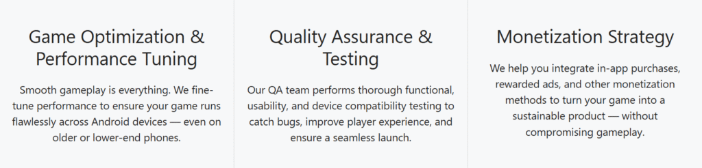From concept and design to development, testing, and post-launch support – we handle every stage of your Android game’s lifecycle.